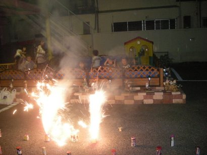 夏の思い出作りに、みんなで花火をしました。